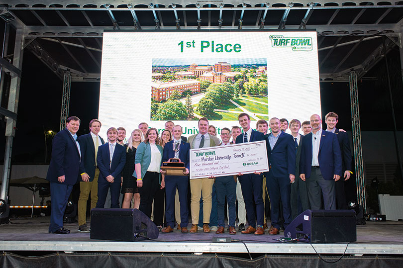 Purdue University was named the winner of the 2022 GCSAA Collegiate Turf Bowl, earning a $4,000 cash prize and the opportunity to complete a paid employment assignment at the Desert Mountain Golf Club and Community in Scottsdale, AZ.