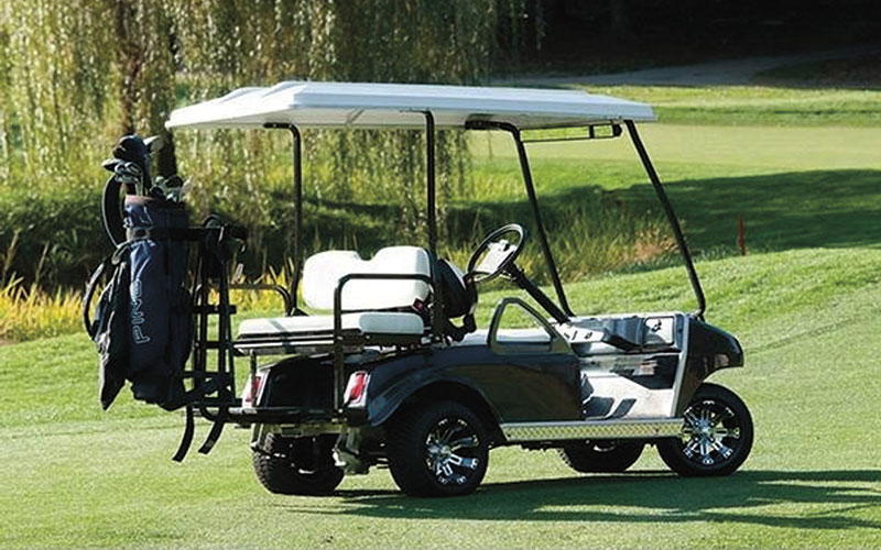 Golf Cart Rear Seat Golf Bag Attachment by Red Hawk, available at redhawk.goftcarts.com.