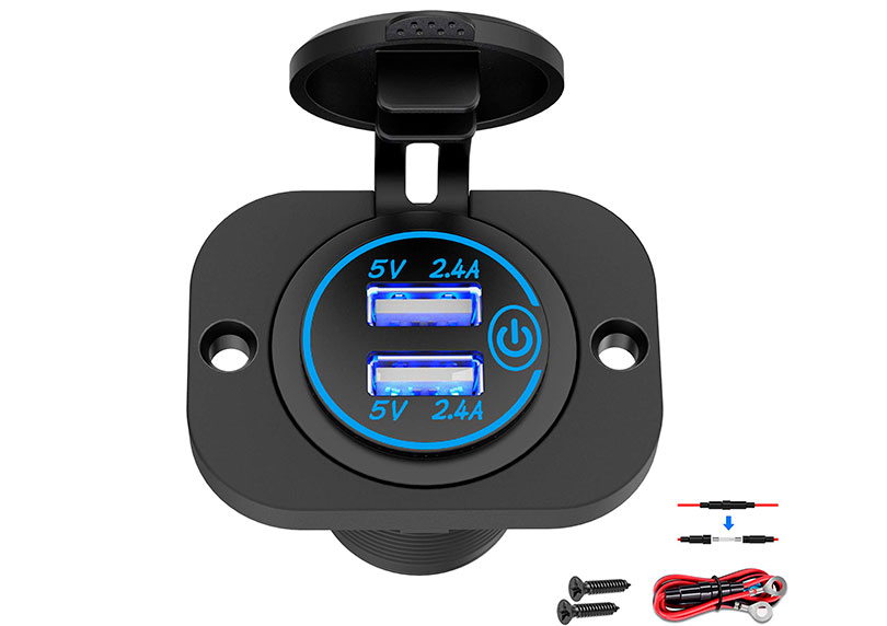 7. Dual USB Socket Waterproof Power Adapter by Qidoe, available at Amazon.