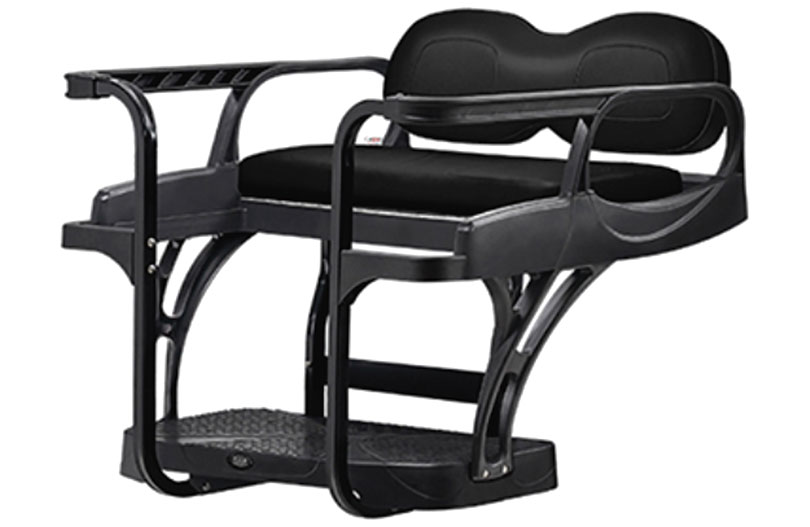 Transform your golf car into a people mover with this rear seat kit. It’s perfect for giving friends a lift or carrying extra gear. The seat bottom flips open to provide a flat working area and access to an underneath storage bin. Stylish and functional, it’s a great addition to any car.
