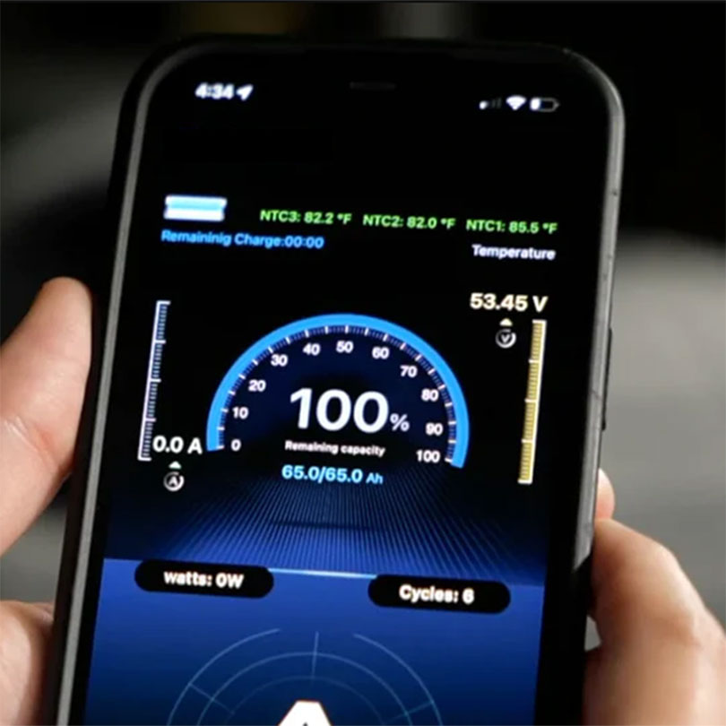 - Bluetooth Mobile App: Gain easy access to State-of-Charge, cell voltage, cycles and much more.